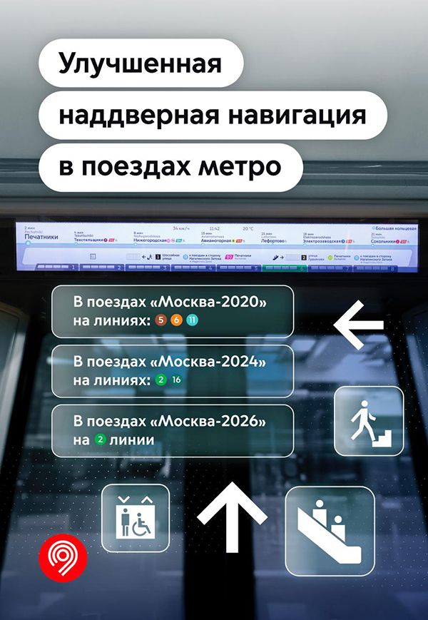 В этом году улучшенная наддверная навигация появится во всех поездах Рублево-Архангельской линии метро. Она станет шестой по счету, где будет применяться эта технология. Сейчас ею оснащены все составы модификации «Москва-2020», «Москва-2024» и «Москва-2026». Больше таких поездов станет и на Замоскворецкой линии.