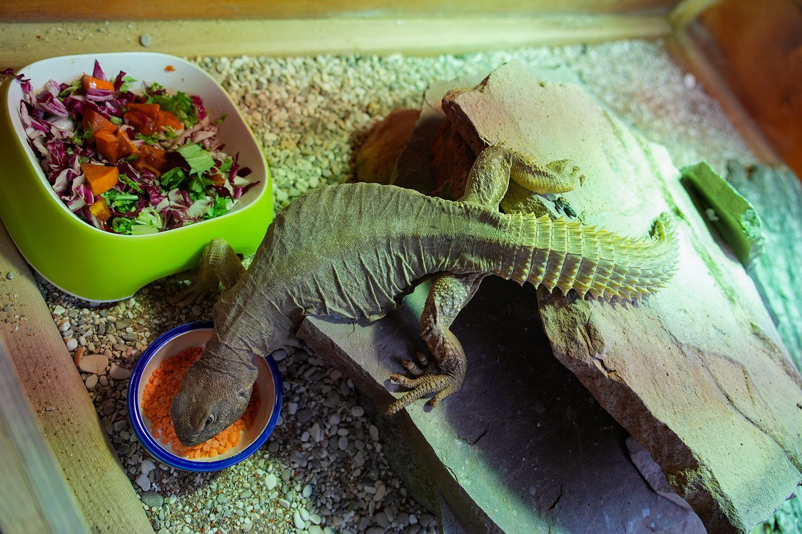 В Московском зоопарке рацион шипохвостов состоит из свежей зелени, нежирной зерновой смеси, а также из насекомых и небольшого количества грызунов.