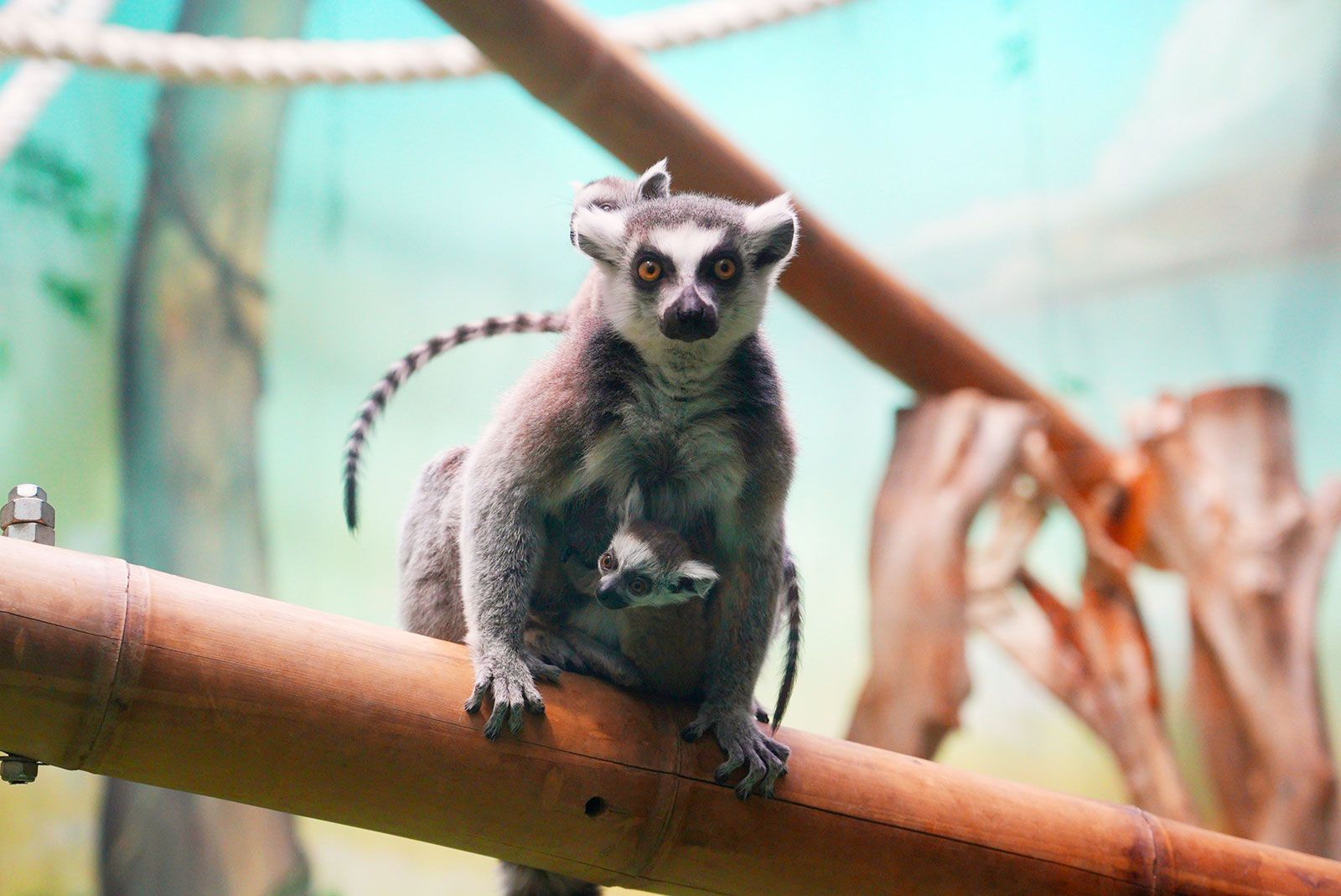 Самцу Барсу — 16 лет. Он приехал в столицу из Новосибирского зоопарка. Самка Алаутра родилась в Московском зоопарке в 2018 году. Ее назвали в честь одноименного озера, крупнейшего на острове Мадагаскар. Животных можно увидеть в павильоне «Дом обезьян», расположенном на новой территории зоопарка.